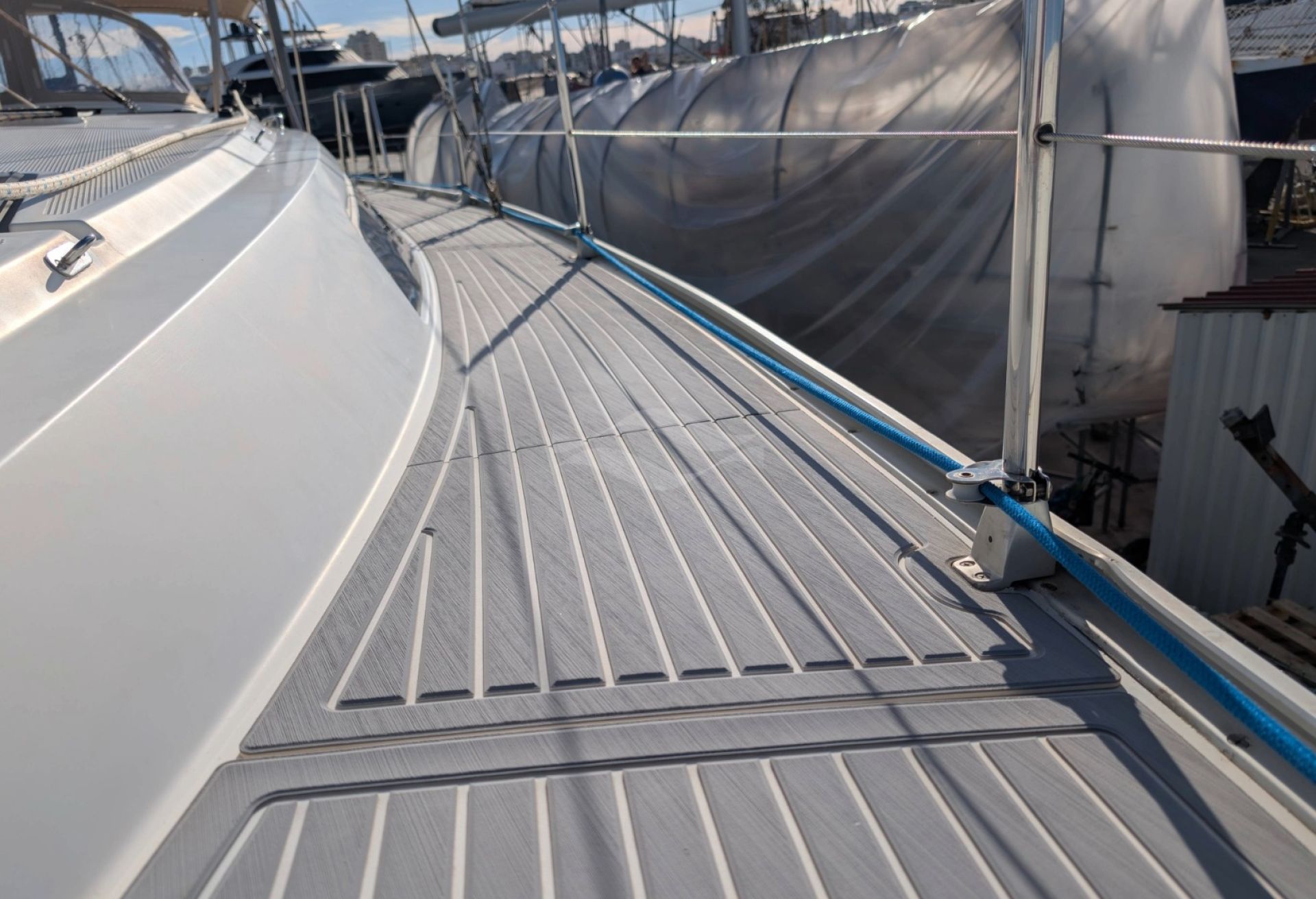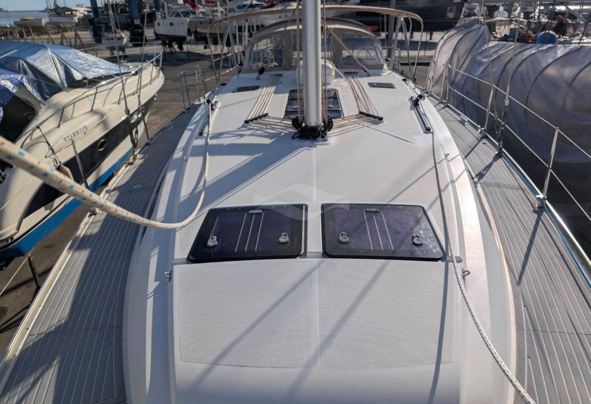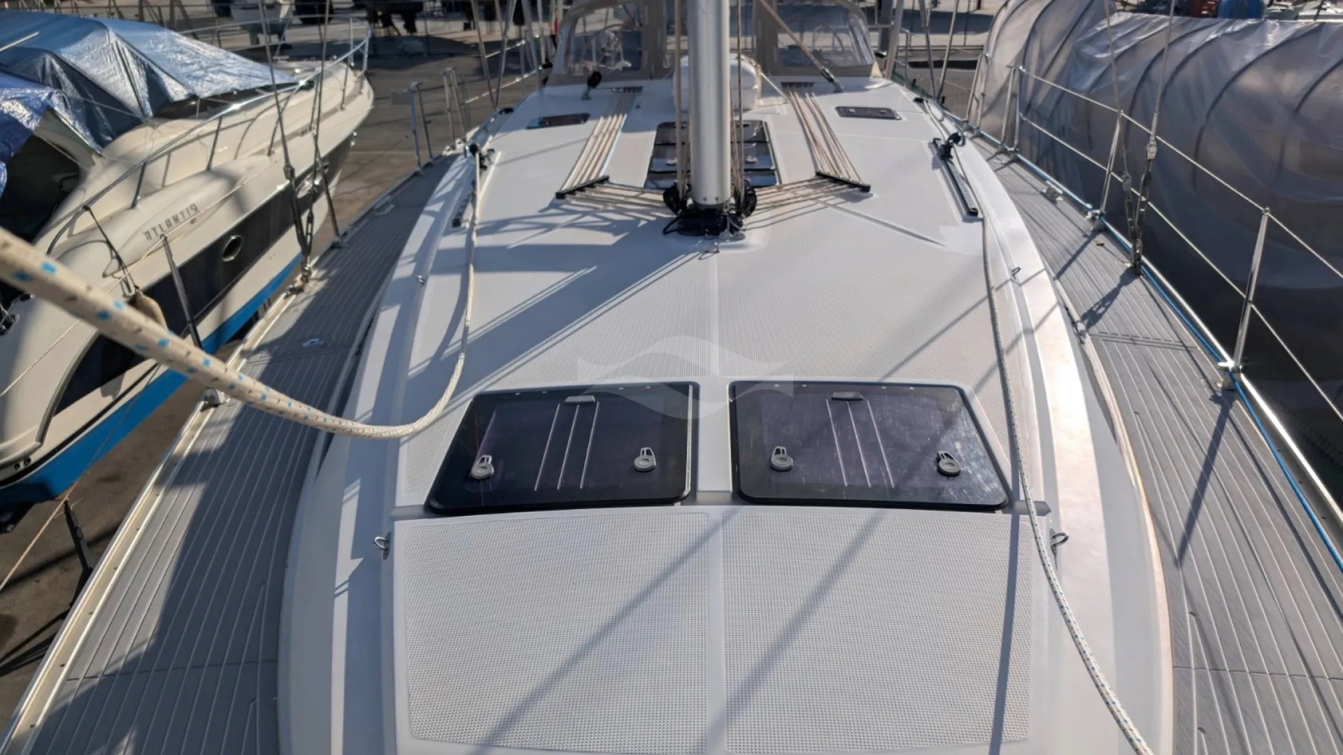 Powered by a reliable Volvo Penta D2-55F diesel engine with only 2,583 hours, this yacht delivers confident maneuverability and dependable performance in all conditions. A CE Category B classification and 2.18-meter draft provide excellent sailing balance and offshore capability, while her 12,254-kg displacement ensures comfortable motion at sea. Fuel and water capacities of 210 L and 350 L support extended stays on board.