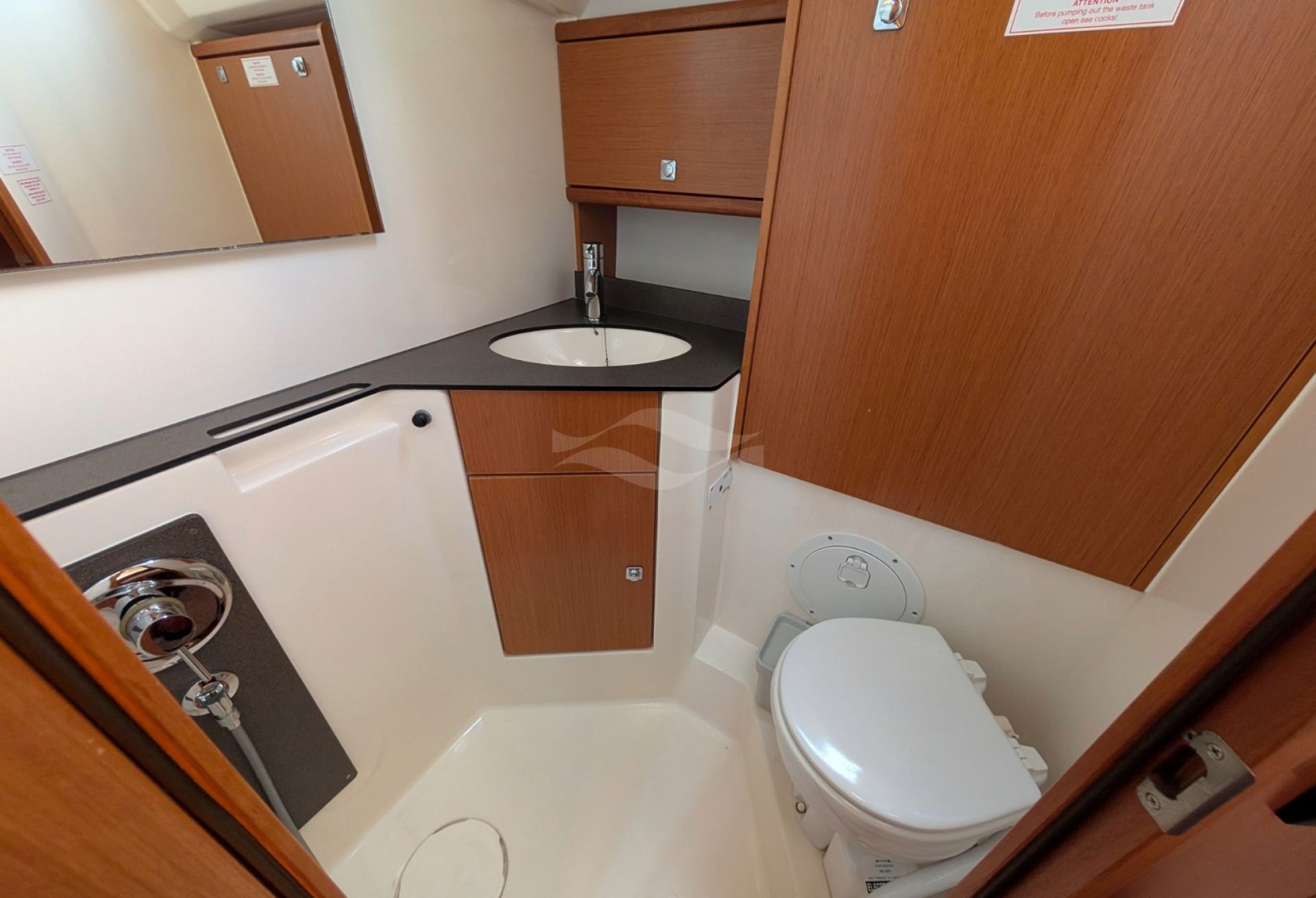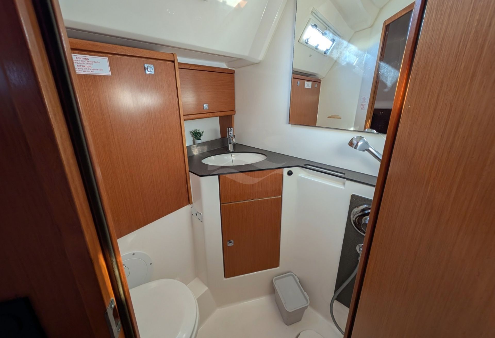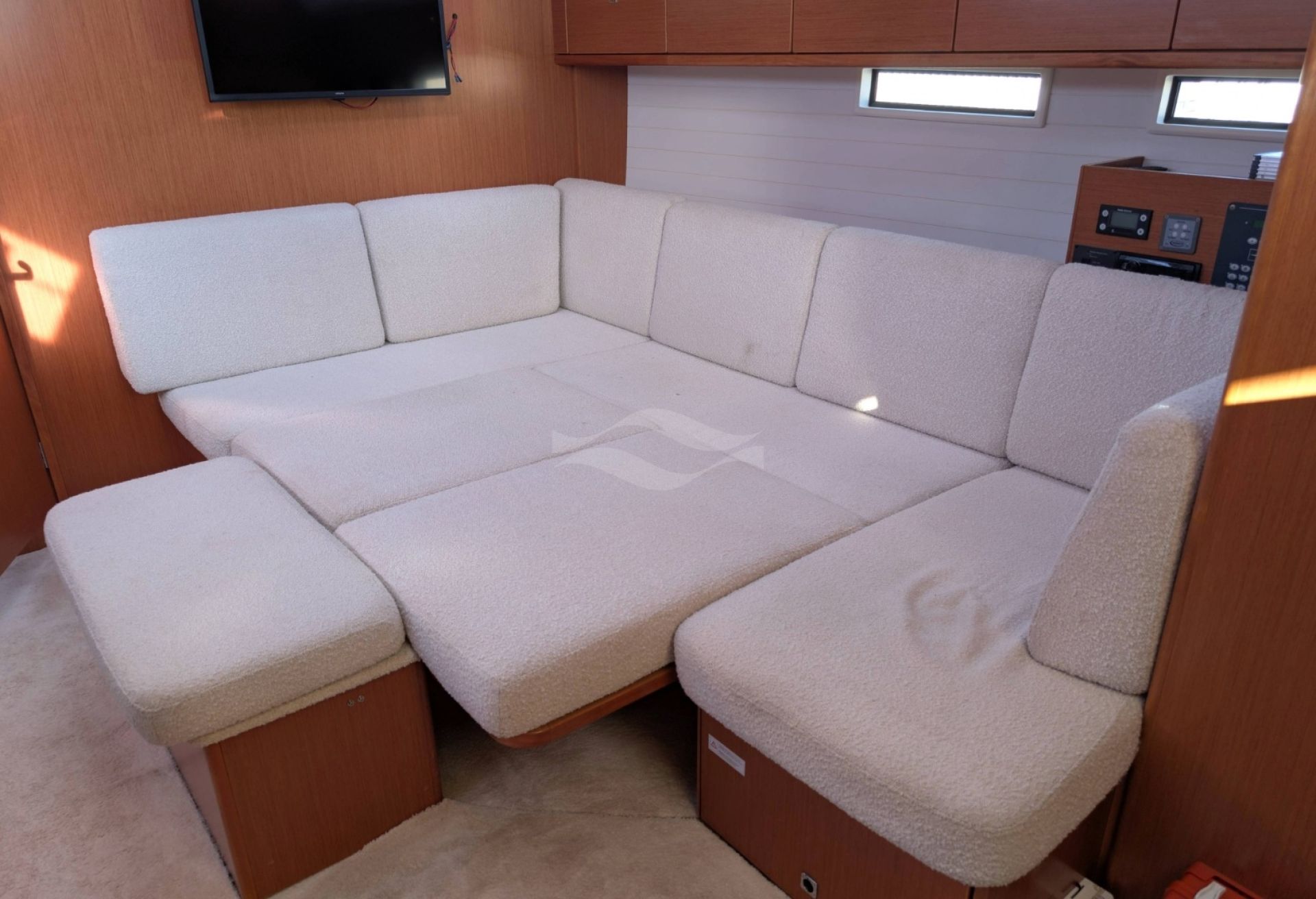 Licensed for 12 passengers (factory rating 16), she provides ample space for groups while maintaining privacy and comfort below deck. Her interior is bright, practical, and designed for life aboard — with generous storage, efficient ventilation, and a layout that seamlessly supports both short getaways and longer cruising adventures.