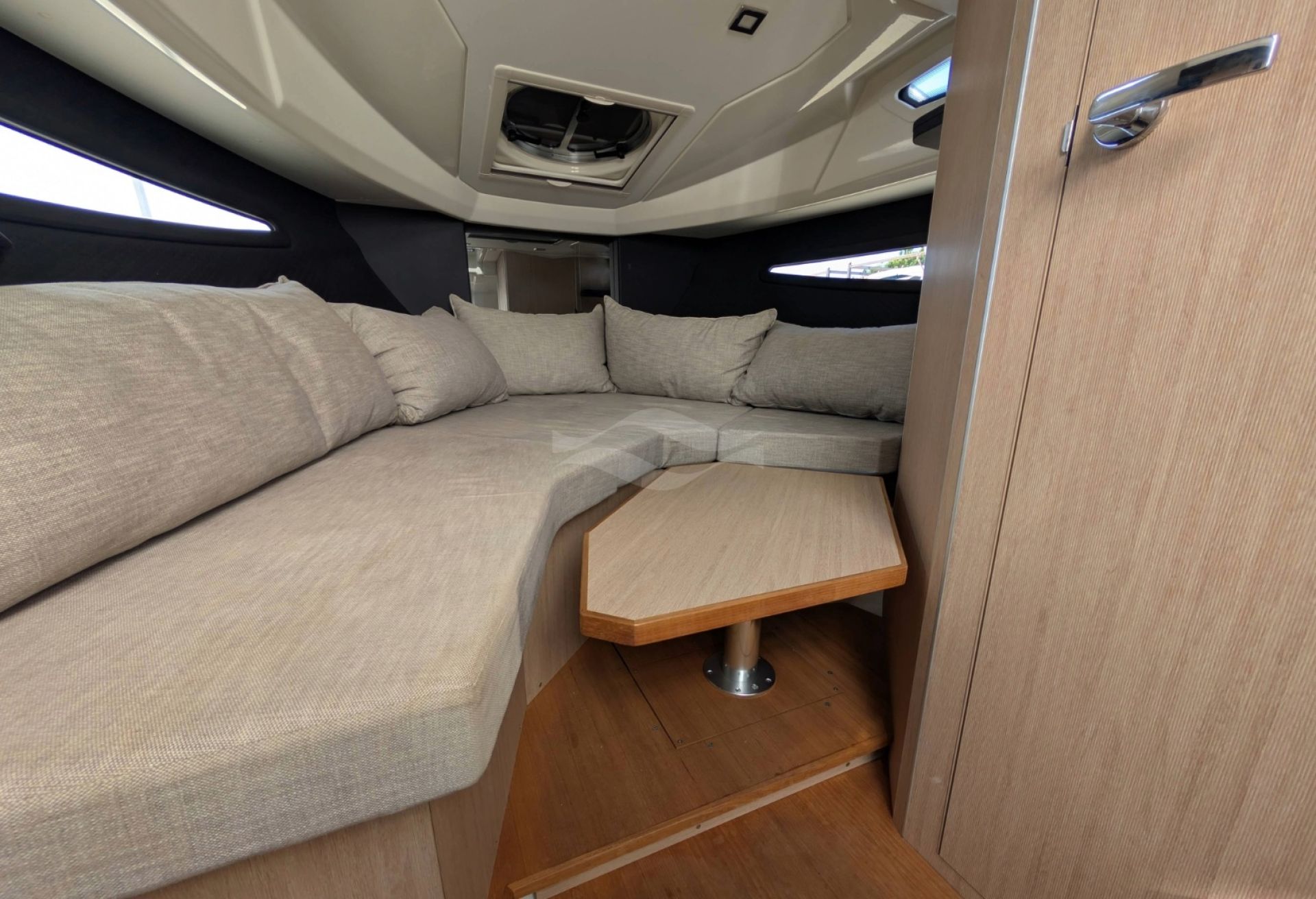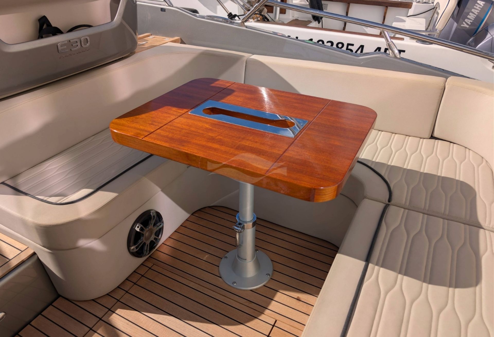 Inside, you’ll find a well-laid-out interior with comfortable seating, practical storage, and accommodations suitable for up to 12 guests. The open layout and bright interior make socializing and relaxation effortless, ensuring every voyage is as enjoyable as the destination itself.