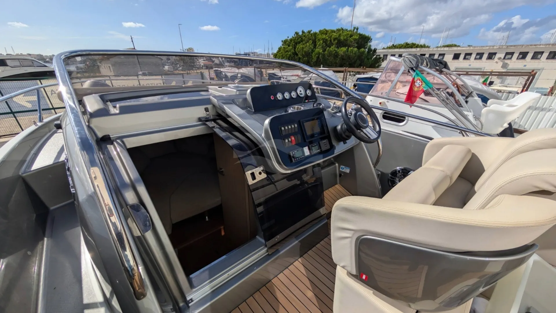 With its 8.88-meter hull and wide beam, the Cranchi offers exceptional stability and maneuverability. The advanced helm and DPS system make docking and navigation intuitive, while the walkaround decks provide safe, easy access for passengers.