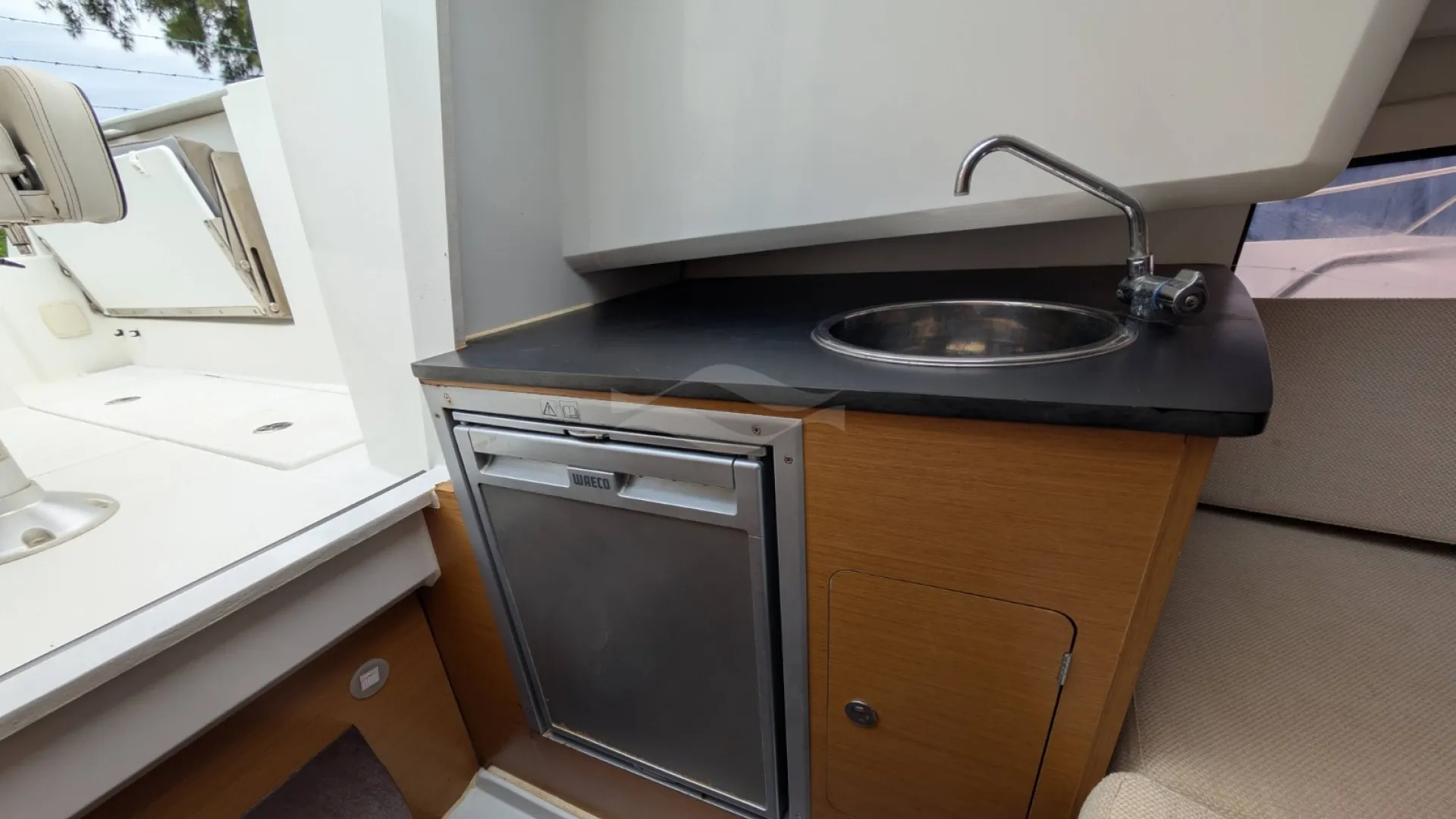 Built by Jeanneau SPBI, this model reflects Jeanneau’s renowned expertise in creating practical yet exciting boats. The clean white fiberglass hull is both robust and stylish, while the walkaround layout maximises space, safety, and freedom of movement — a design made for active boating and easy enjoyment.