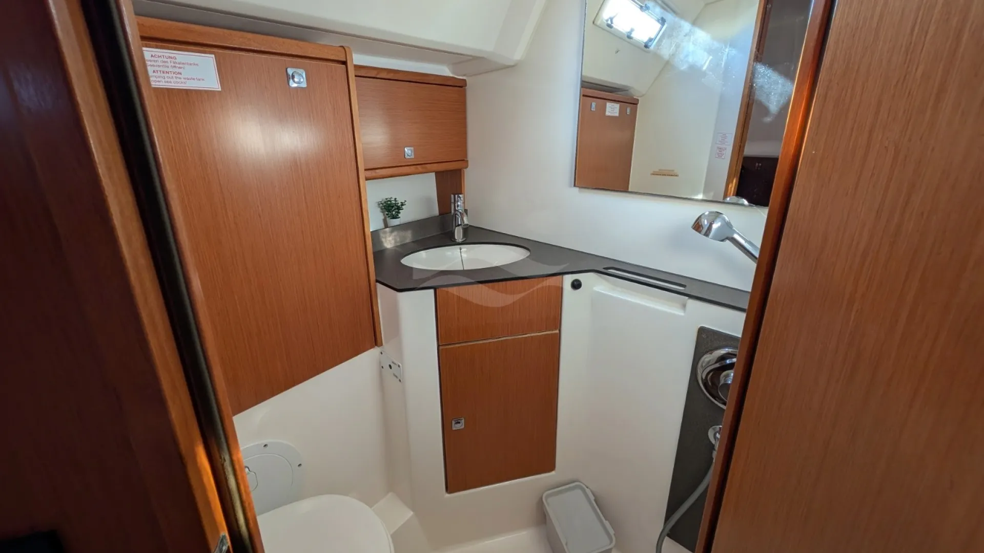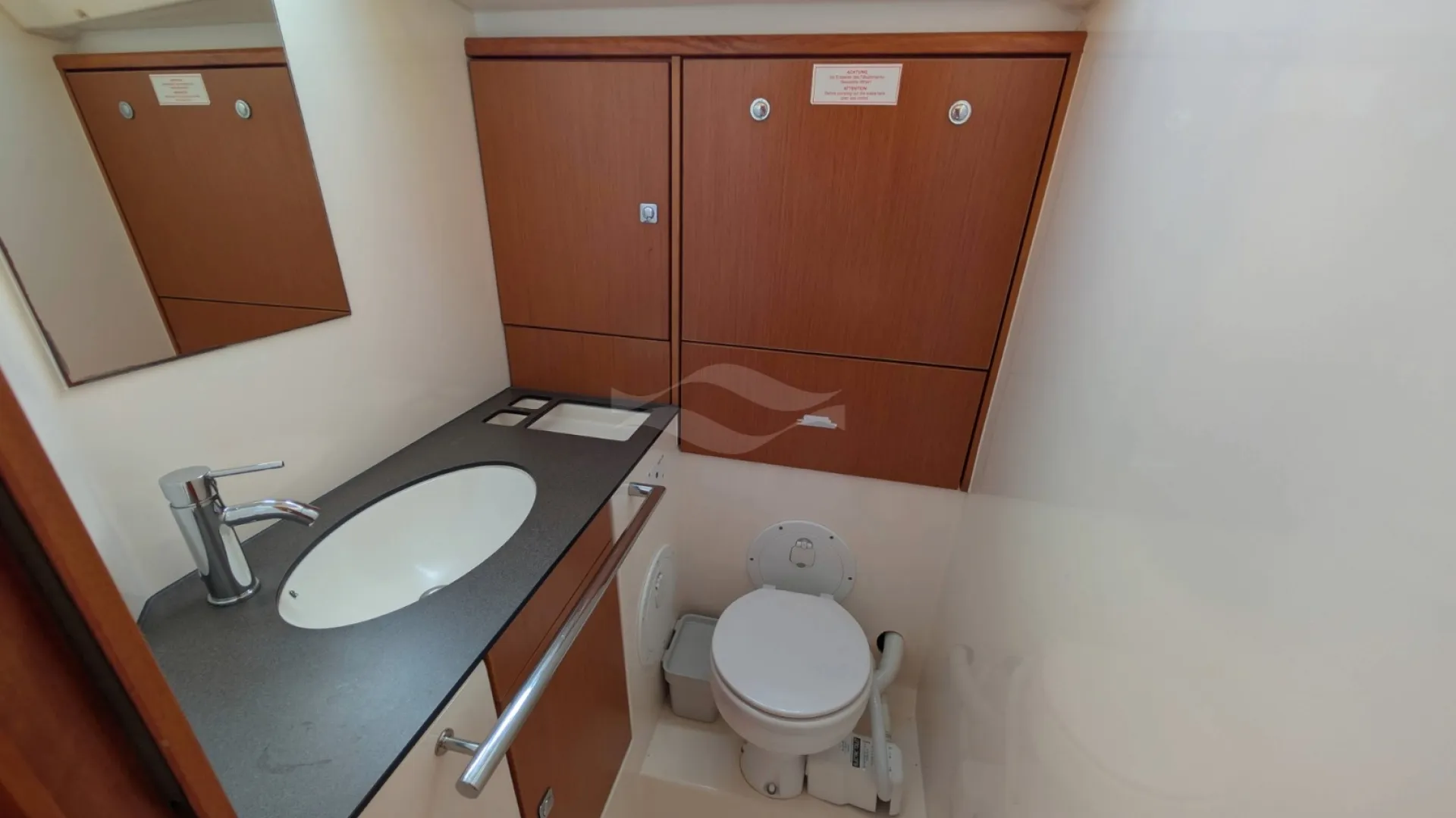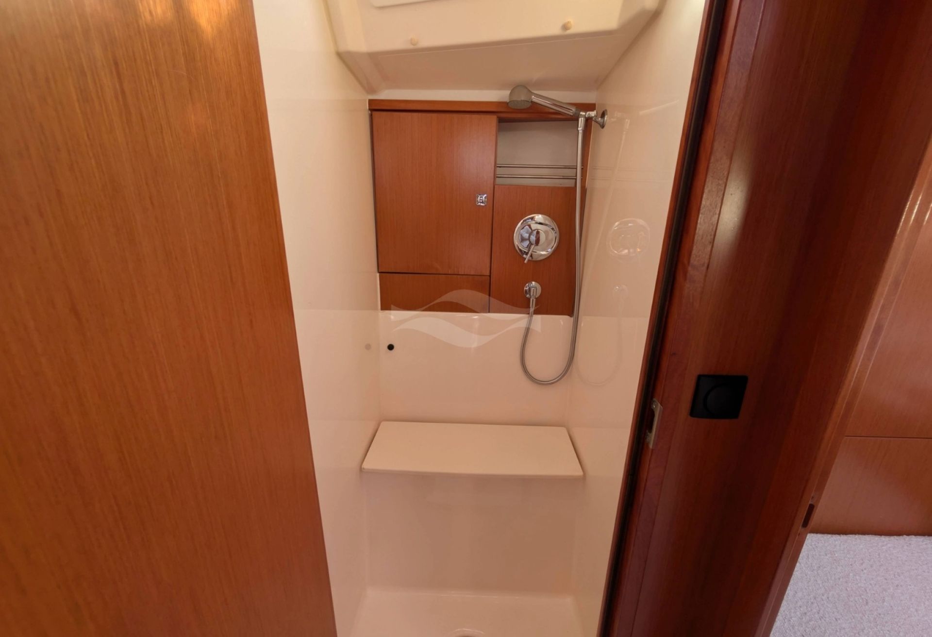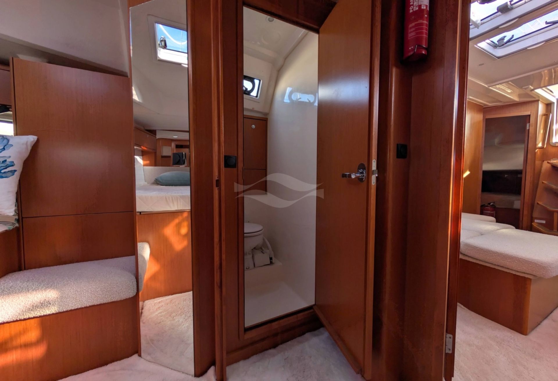 Licensed for 12 passengers (factory rating 16), she provides ample space for groups while maintaining privacy and comfort below deck. Her interior is bright, practical, and designed for life aboard — with generous storage, efficient ventilation, and a layout that seamlessly supports both short getaways and longer cruising adventures.