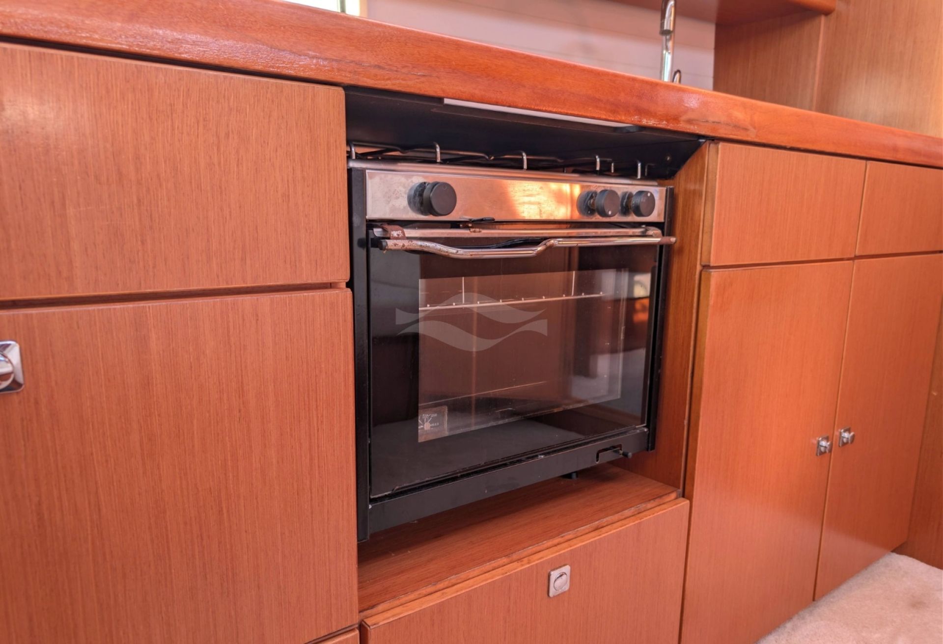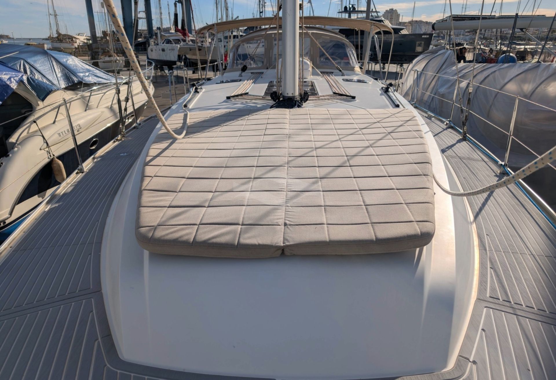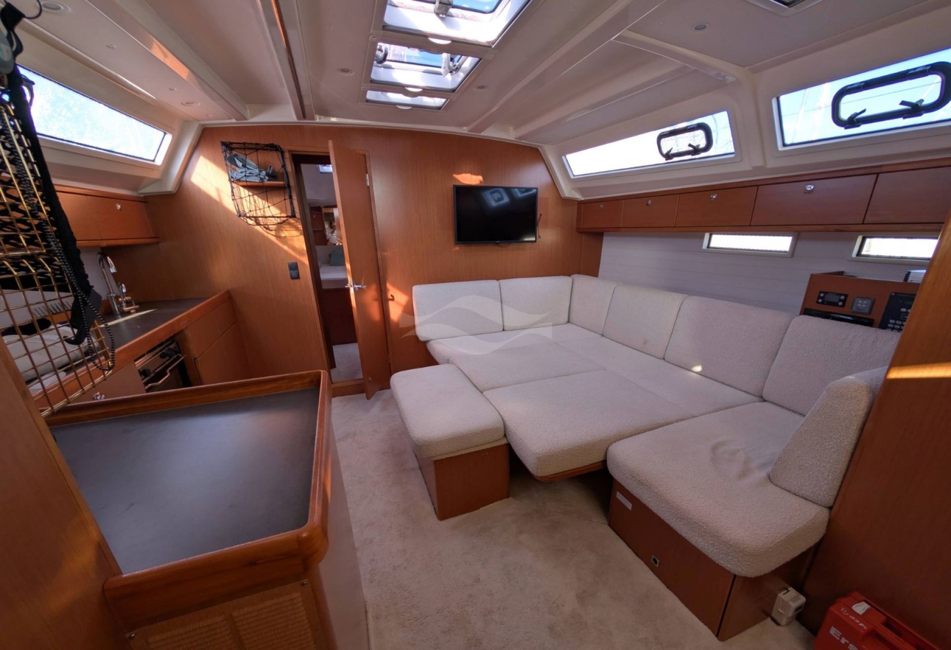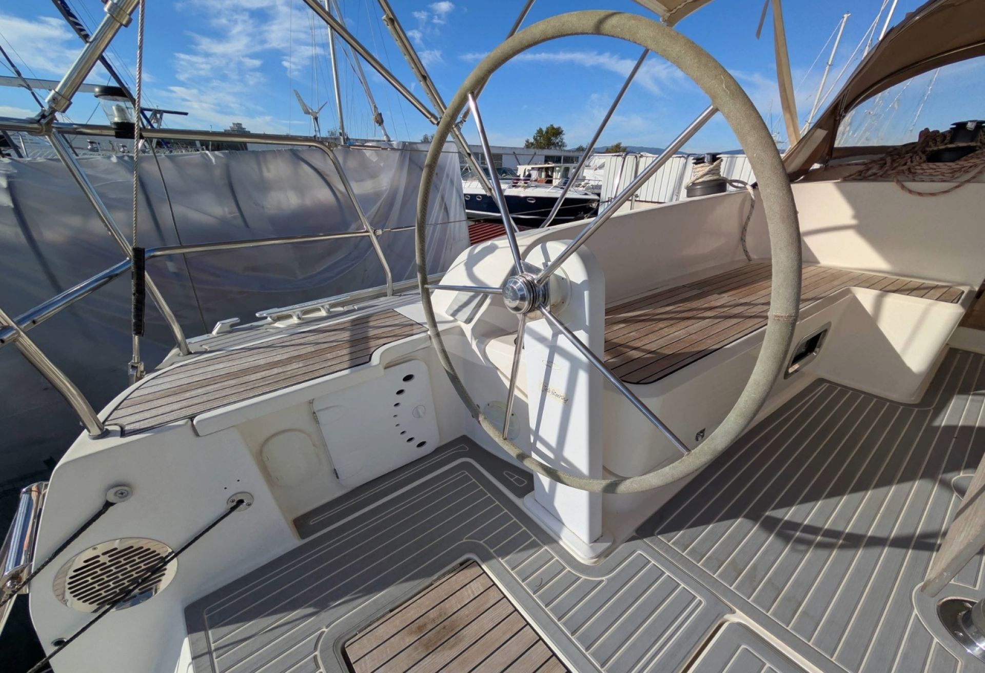 Powered by a reliable Volvo Penta D2-55F diesel engine with only 2,583 hours, this yacht delivers confident maneuverability and dependable performance in all conditions. A CE Category B classification and 2.18-meter draft provide excellent sailing balance and offshore capability, while her 12,254-kg displacement ensures comfortable motion at sea. Fuel and water capacities of 210 L and 350 L support extended stays on board.