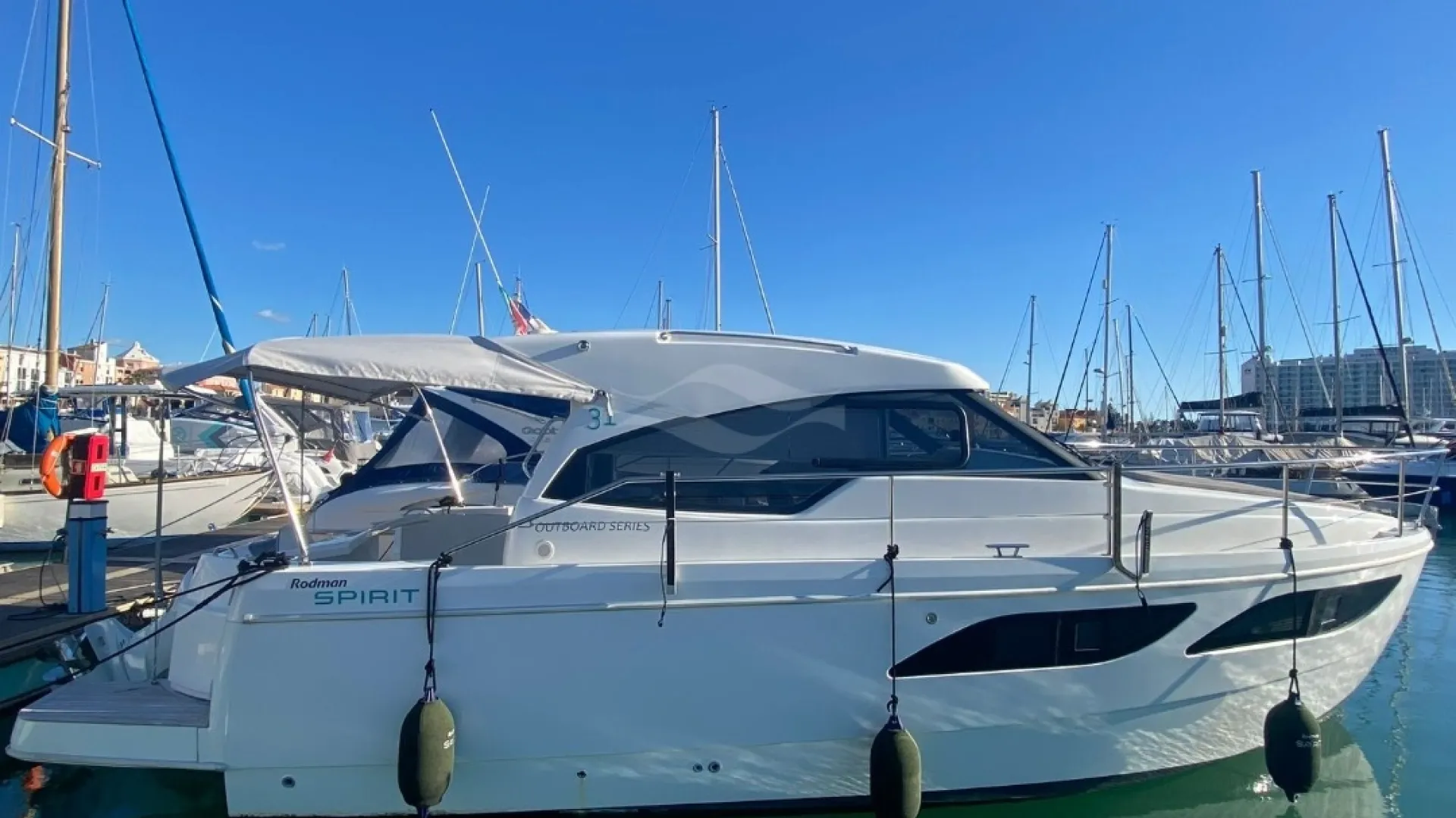 A solid 31-footer, the Rodman Spirit 31 HT pairs a capable offshore hull with a protective hardtop—ideal for confident coastal cruising