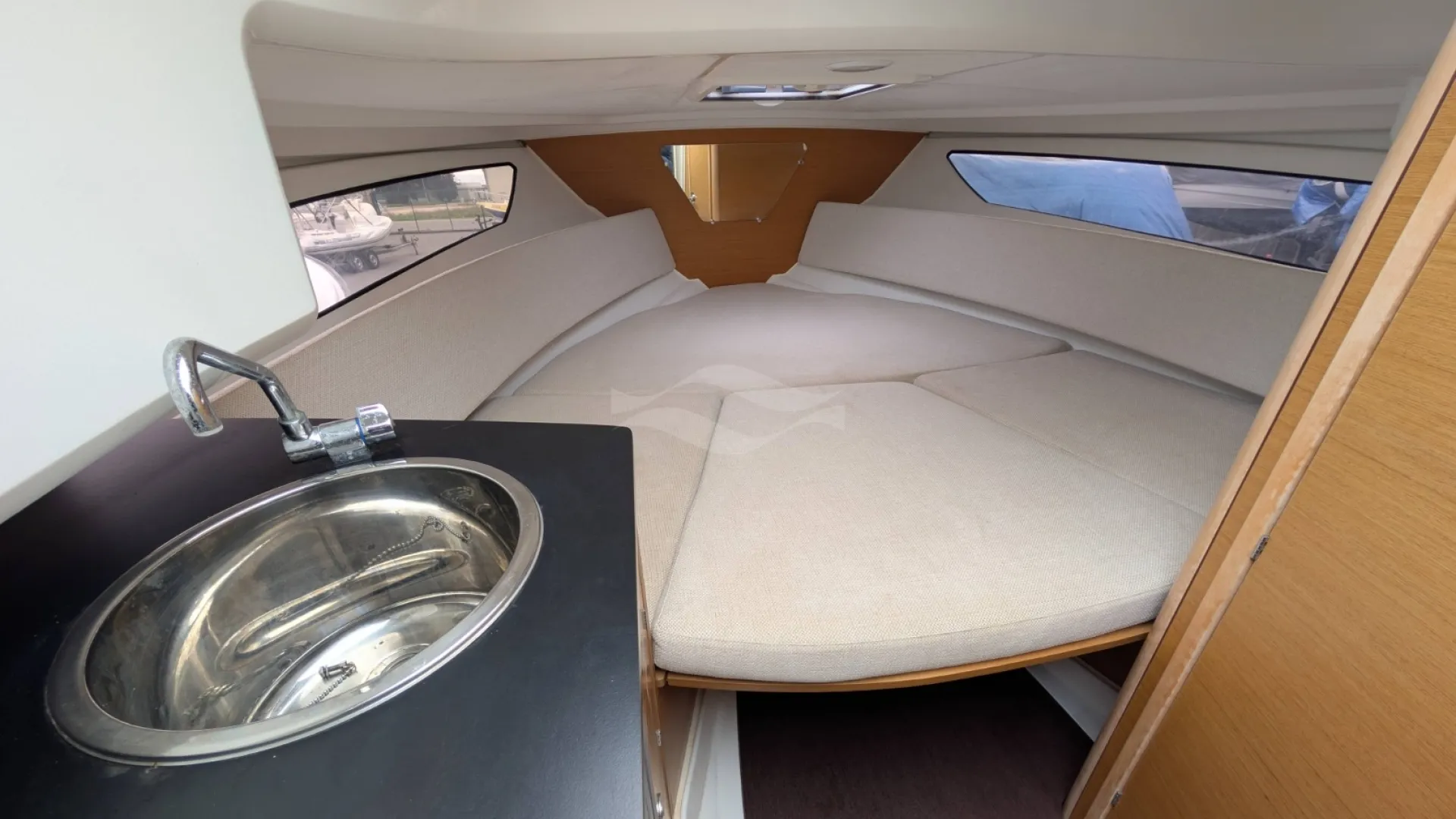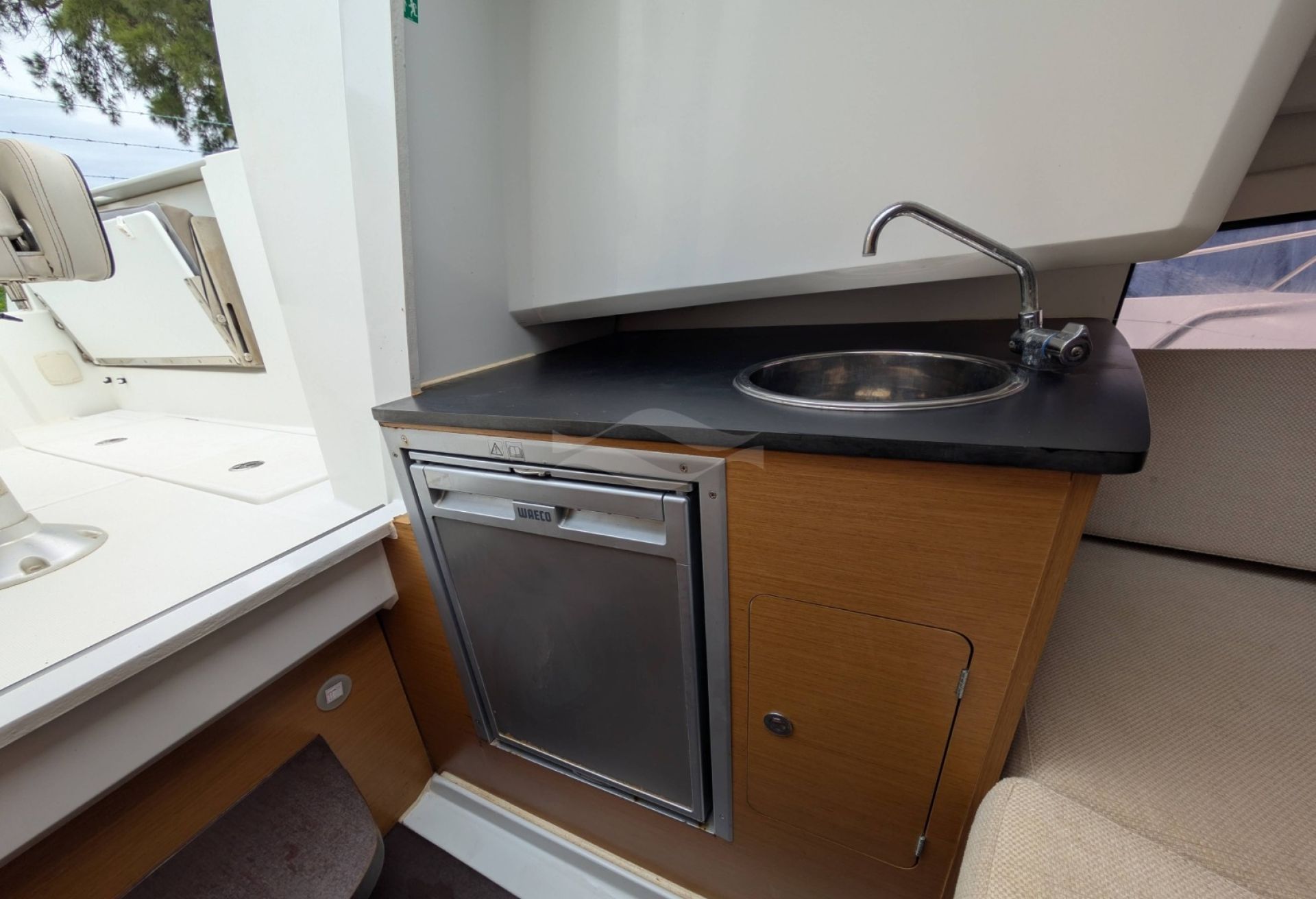 Built by Jeanneau SPBI, this model reflects Jeanneau’s renowned expertise in creating practical yet exciting boats. The clean white fiberglass hull is both robust and stylish, while the walkaround layout maximises space, safety, and freedom of movement — a design made for active boating and easy enjoyment.