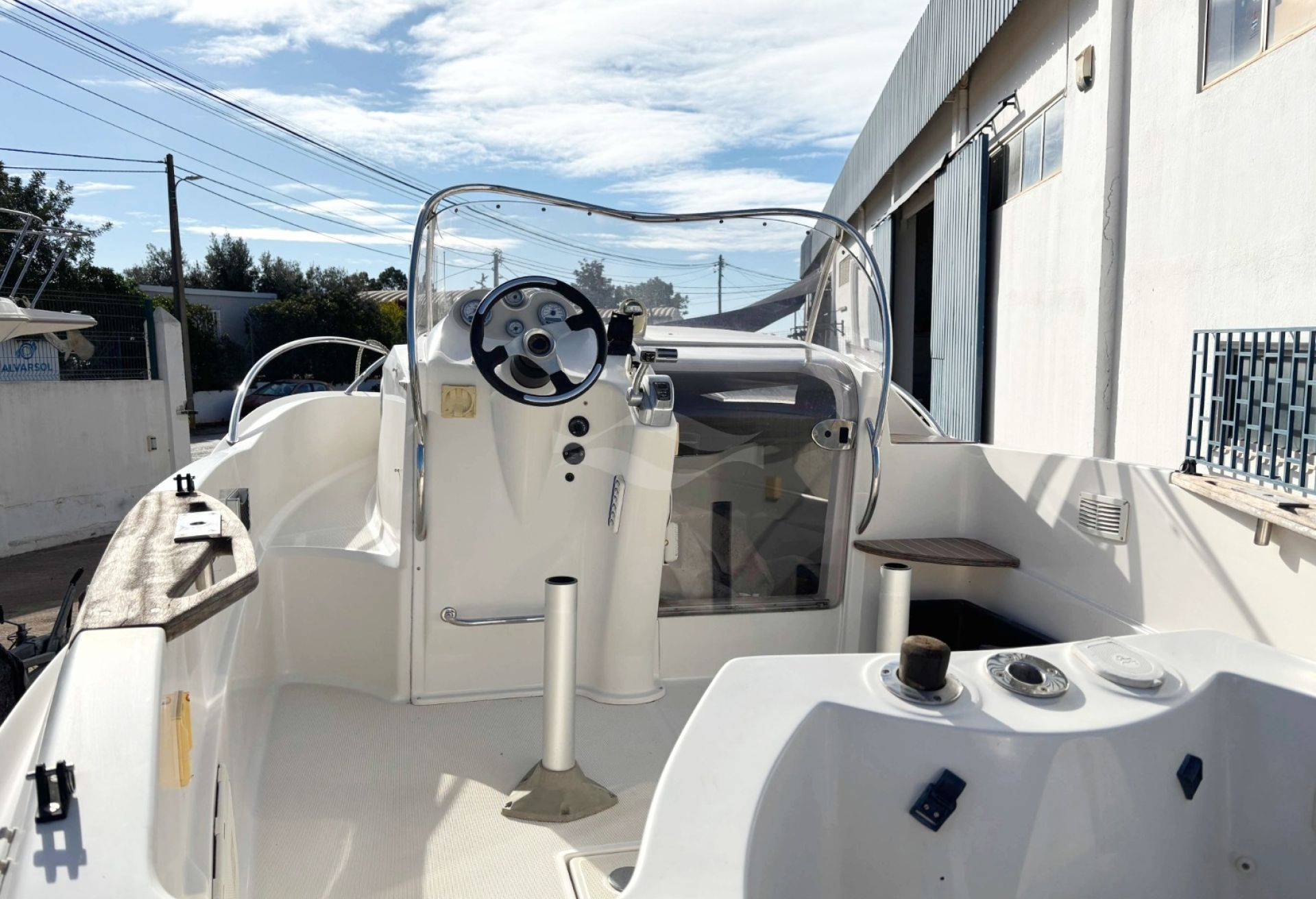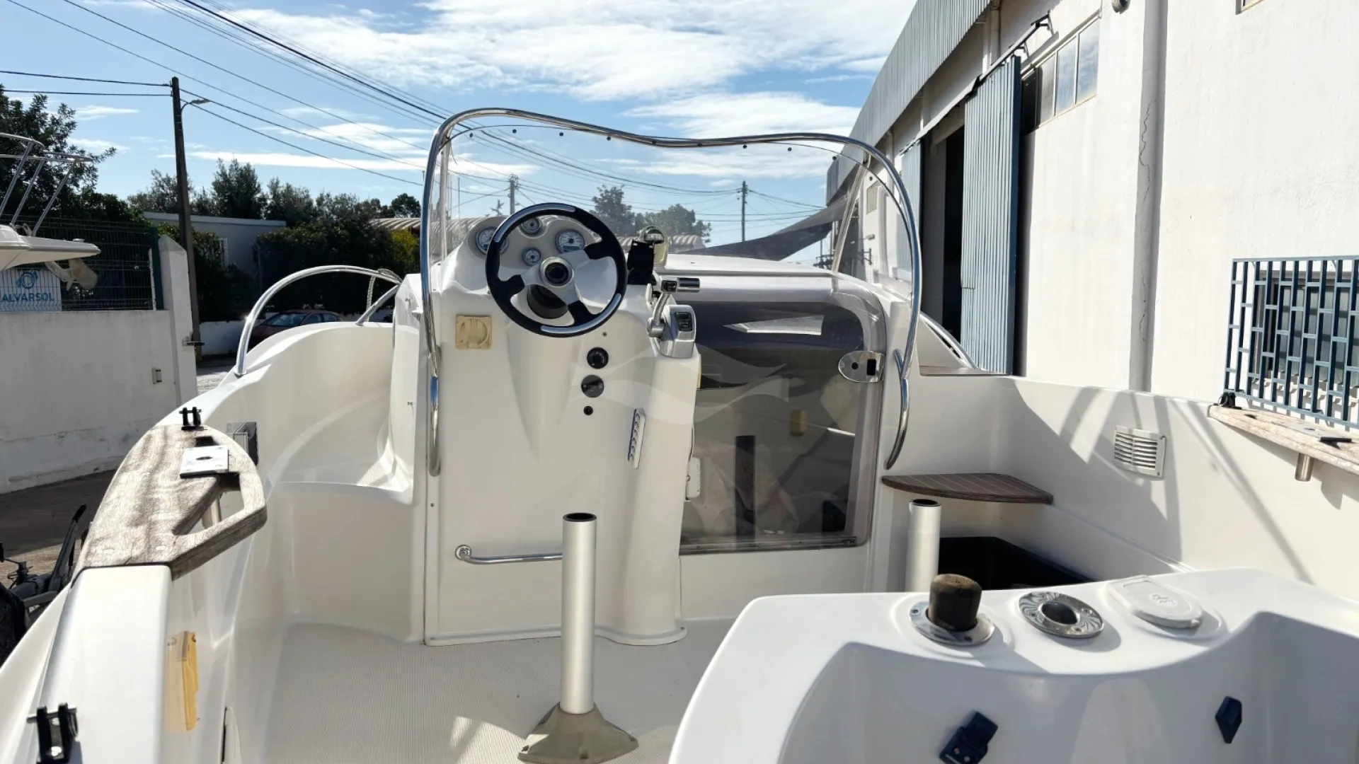 The open cockpit layout and walkaround deck give you easy access to all areas of the boat, perfect for socializing, fishing, or sunbathing. A small cabin or sheltered area provides storage, protection from the elements, and a practical space for longer outings. Seating is thoughtfully arranged to maximize comfort and onboard usability.