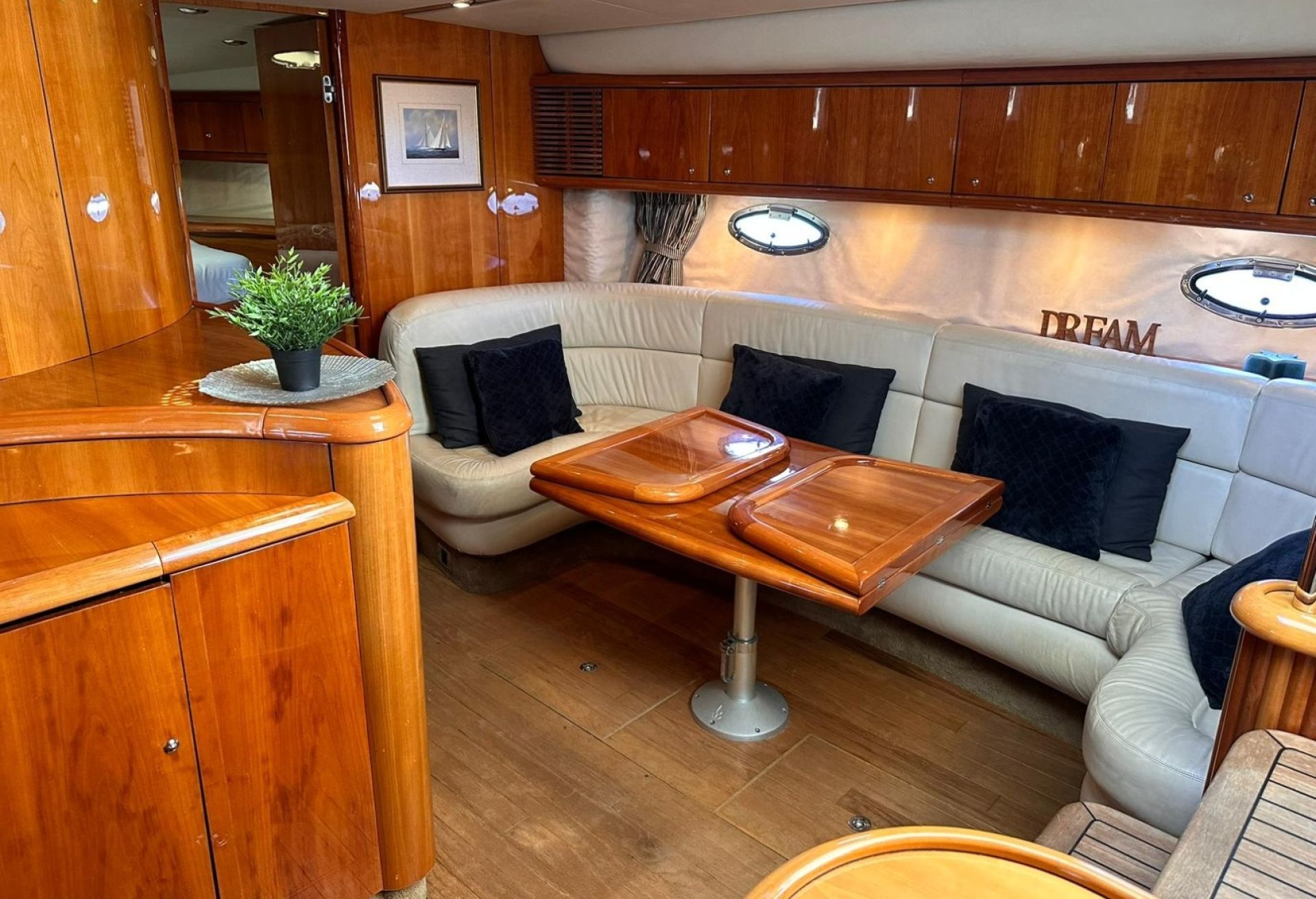 Below deck, the yacht offers a well-designed interior with accommodation for up to 6 guests, making it ideal for weekend escapes or extended stays. Air conditioning ensures comfort even during the warmest months, while the solid build quality reflects Sunseeker’s renowned craftsmanship.