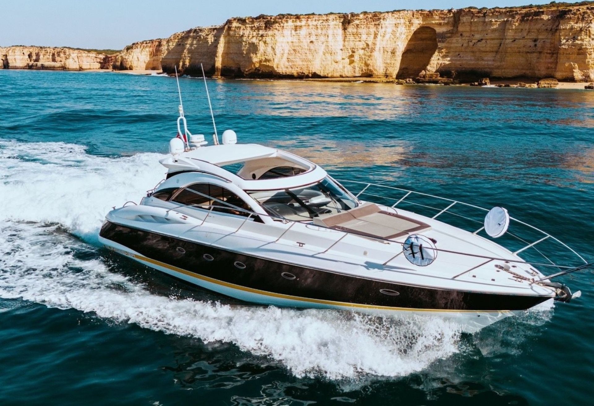 Step aboard the Sunseeker Camargue 50 HT and experience a perfect balance of performance, comfort, and classic design. Powered by twin Volvo Penta D12 engines delivering a combined 1430 HP, this yacht offers strong, reliable performance—ideal for cruising the Algarve coastline with ease and confidence.